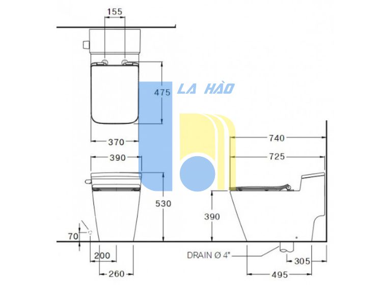 Thân dài, S Trap (305 mm), nắp đóng êm