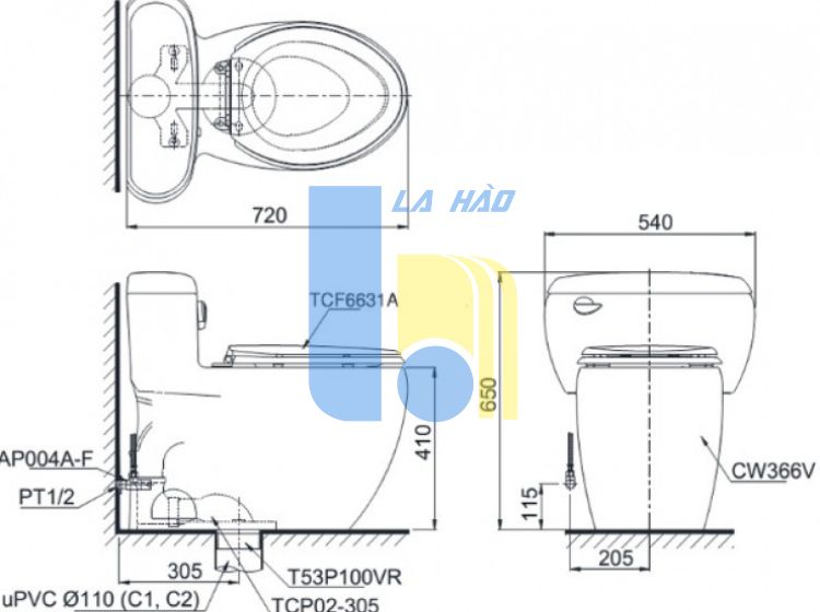 Bản vẽ bồn cầu MS366 nắp điện tử TCF6631 TOTO