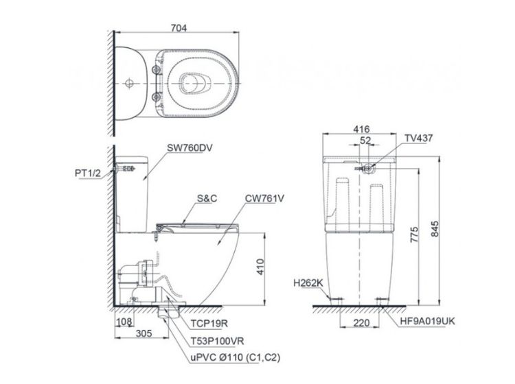 Bản vẽ nắp bệt điện tử TOTO CS761 nắp TCF4732 A