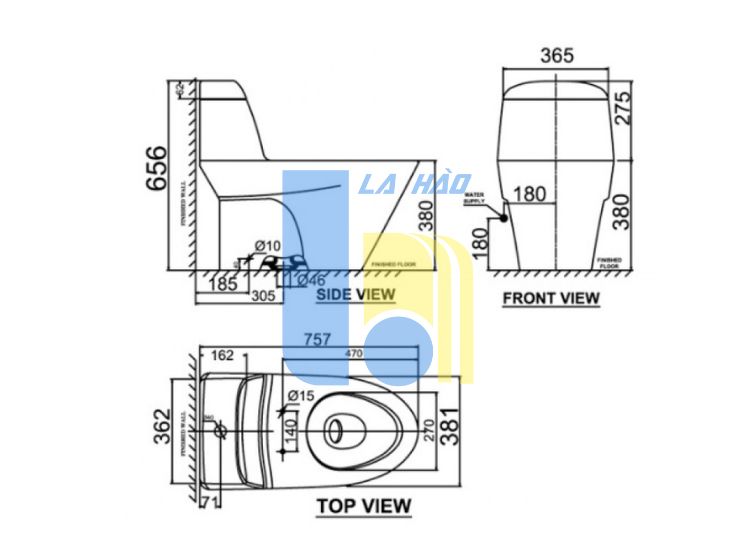 Kích thước: 757 x 365 x 645 mm (dài x rộng x cao)