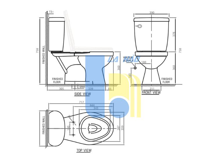 Bản vẽ bồn cầu American VF2395 2 khối dòng Winston