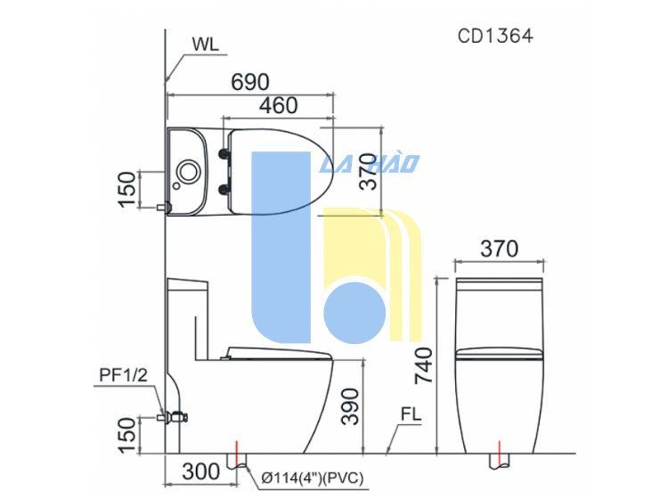 Bản vẽ kỹ thuật bồn cầu Caesar C1364