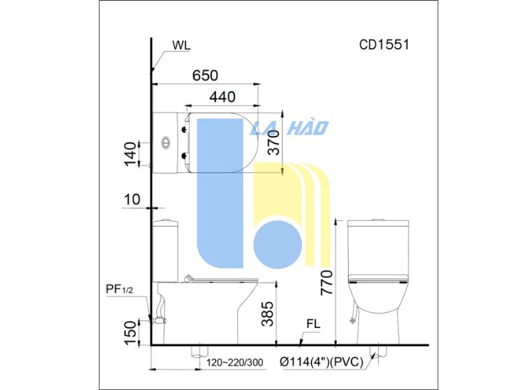 Bản vẽ kỹ thuật bệt vệ sinh Casa C1551