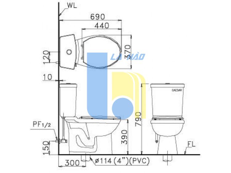 Thông số bồn cầu CAESAR CT1325 két T1125-PW