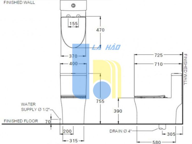 Kích thước: 725 x 400 x 755 mm (DxRxC)