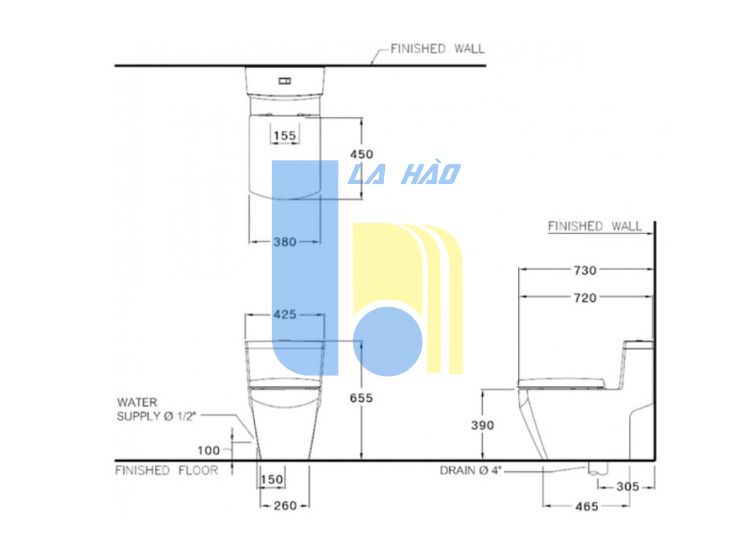 Xả thẳng, 2 nút nhấn, 3/4.5L