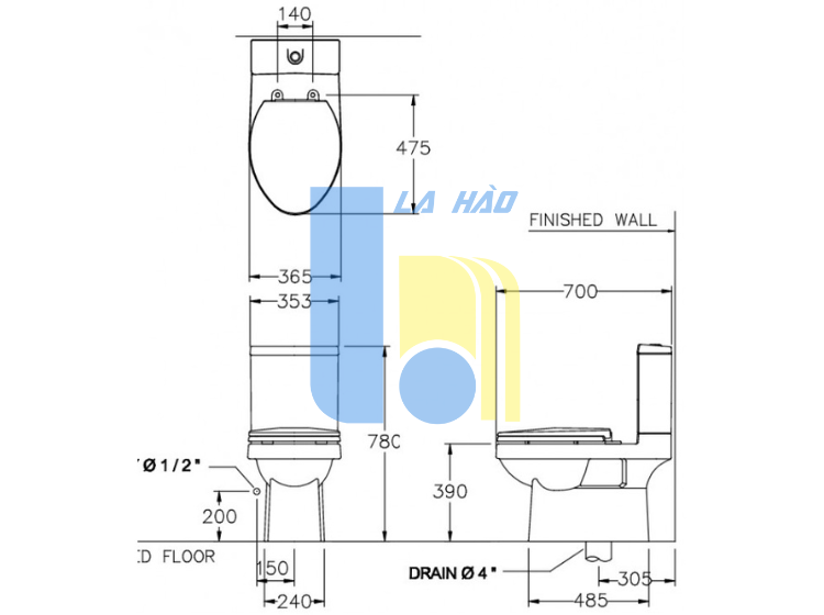 Bản vẽ bồn cầu C1182 COTTO dòng Viva E