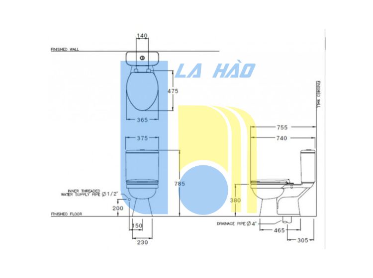 Bản vẽ bồn cầu C13440 COTTO