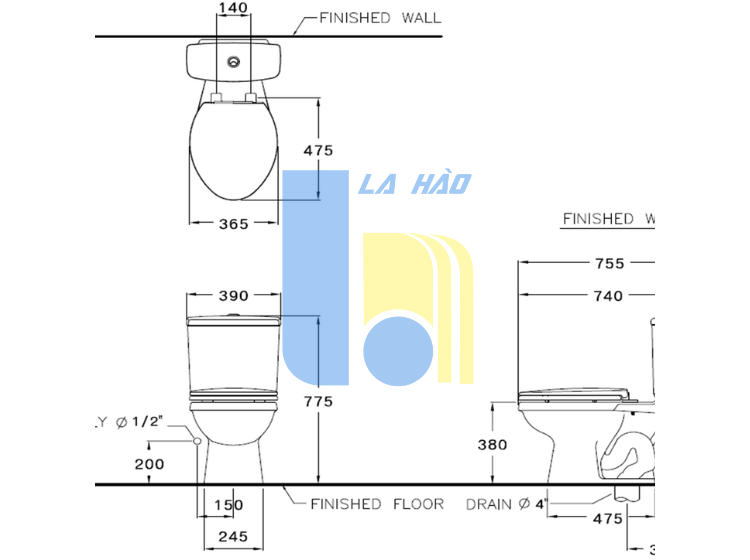 Bản vẽ kỹ thuật bồn cầu Cotto C1371