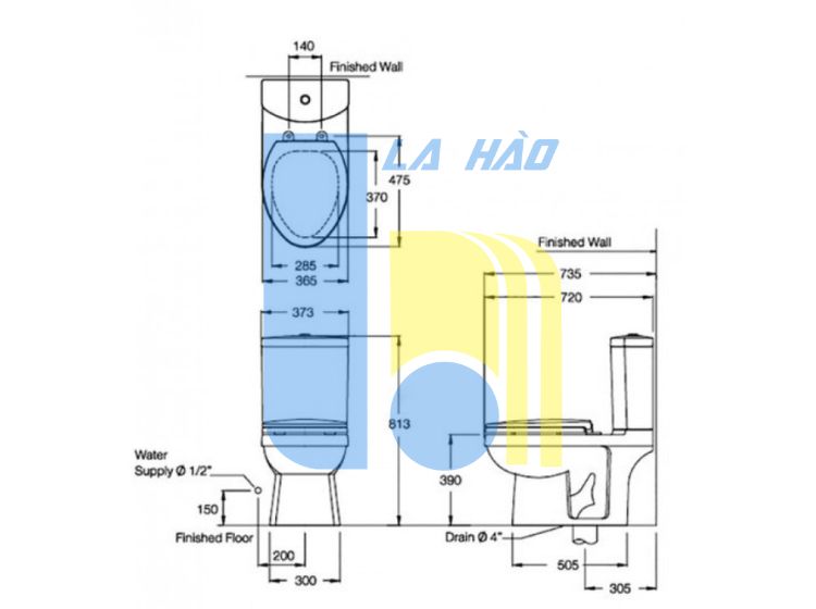 Thân dài, S Trap (305 mm), nắp đóng êm