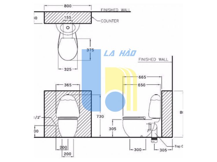 Bản vẽ kỹ thuật bồn cầu Cotto C15007