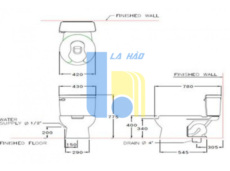Bản vẽ kích thước bồn cầu SC6657 C9251 COTTO 2 khối