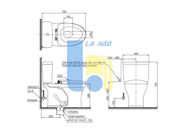 Bản vẽ kích thước bồn cầu nắp điện tử TOTO CS 735DW11
