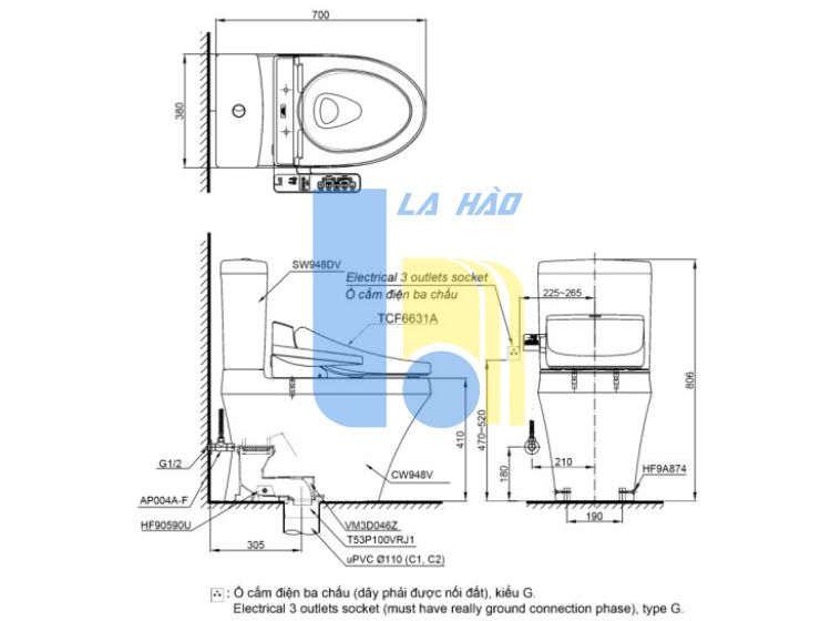 Nắp rửa điện tử: TCF6631A - Xuất xứ: Malaysia