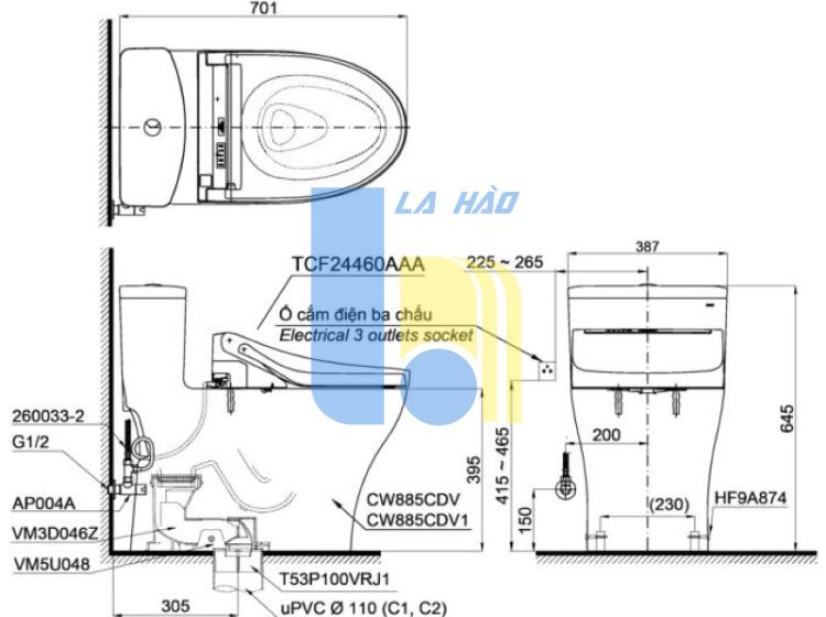 Nắp rửa điện tử: TCF24460AAA (W15) - Xuât xứ: Malaysia