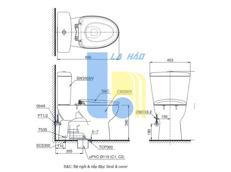 Bản vẽ kích thước xí bệt TOTO CS 300DT8Y1