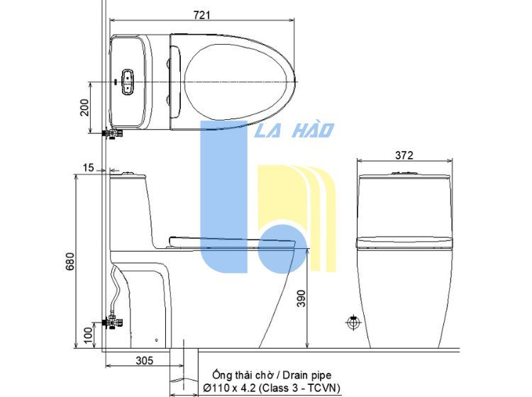 Tâm thoát : 300mm (+-5)