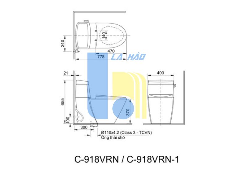 Kích thước bồn cầu: 778 x 400x 645 mm (dài x rộng x cao)