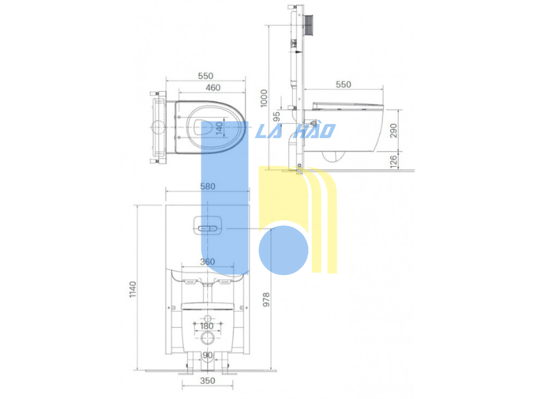 Bản vẽ bàn cầu AC952VN Inax treo tường