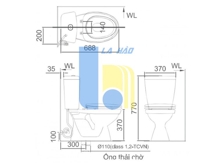 Tâm thoát : 300mm (+-5)