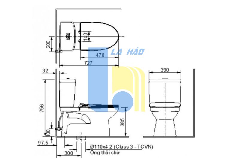 Tâm thoát : 300mm (+-5)