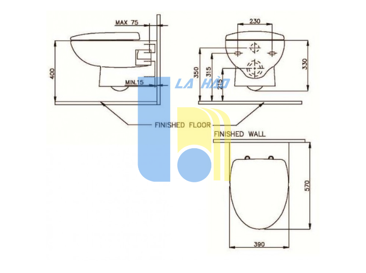 Bản vẽ kỹ thuật bồn cầu Nahm SVC2680HW10N01 treo tường