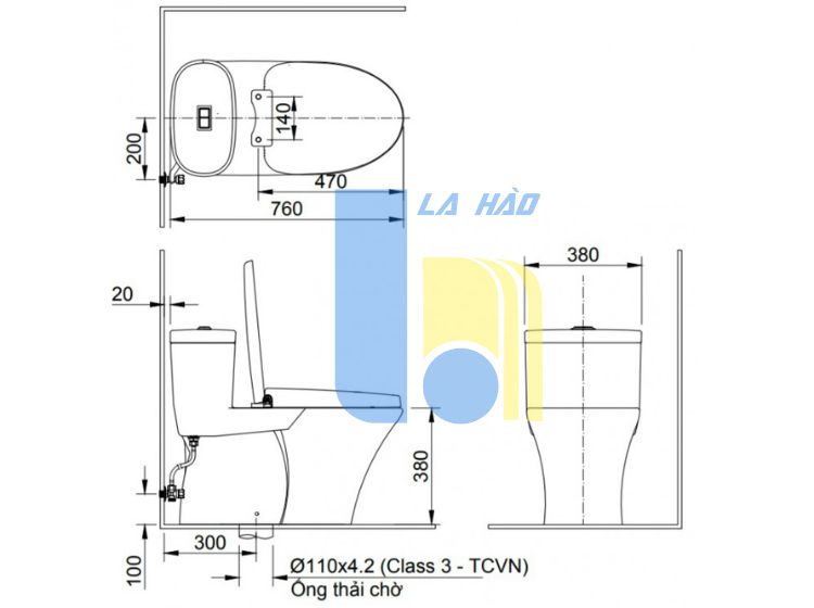 Kích thước bồn cầu: 736 x 394 x 650 mm (dài x rộng x cao)