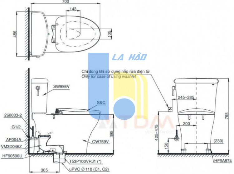 Bản vẽ bồn cầu CS986 nắp rửa cơ TCW1211A TOTO