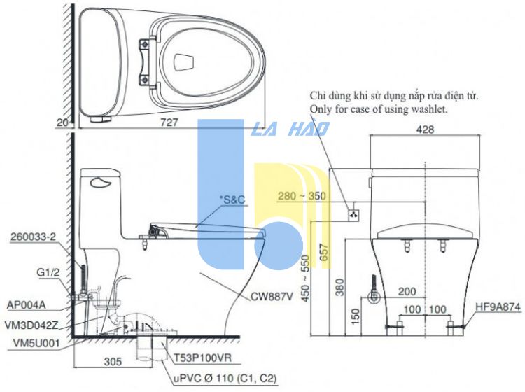 Phù hợp lắp đặt với nắp rửa điện tử WASHLET (tùy chọn)