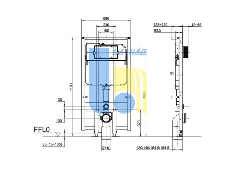 Tên sản phẩm: Két nước và khung âm tường kèm ống thải cong