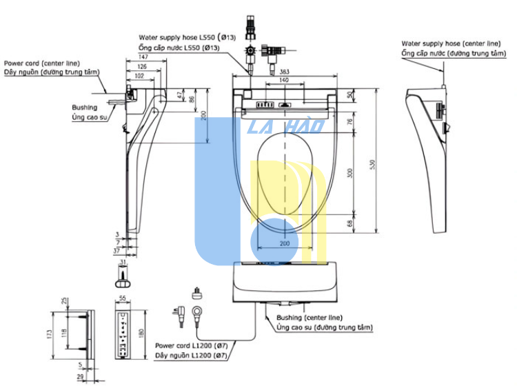 Điều chỉnh nhiệt độ sấy, nước và bệ ngồi.