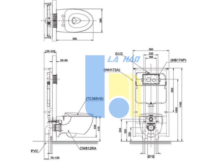 Bản vẽ kỹ thuật xí bệt TOTO CW 812 RA